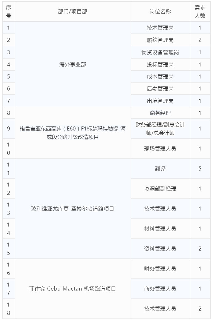 格鲁吉亚东西高速(E60)F1标楚马特了提-海威段公路升级改造项目:该项目中标合同额折合人民币约8.49亿元,2019年10月1日下达开工令。项目从格鲁吉亚的亚楚马特了提至海威,总长约11.6公里,4车道,包括17座桥和3个隧道。总工期36个月。